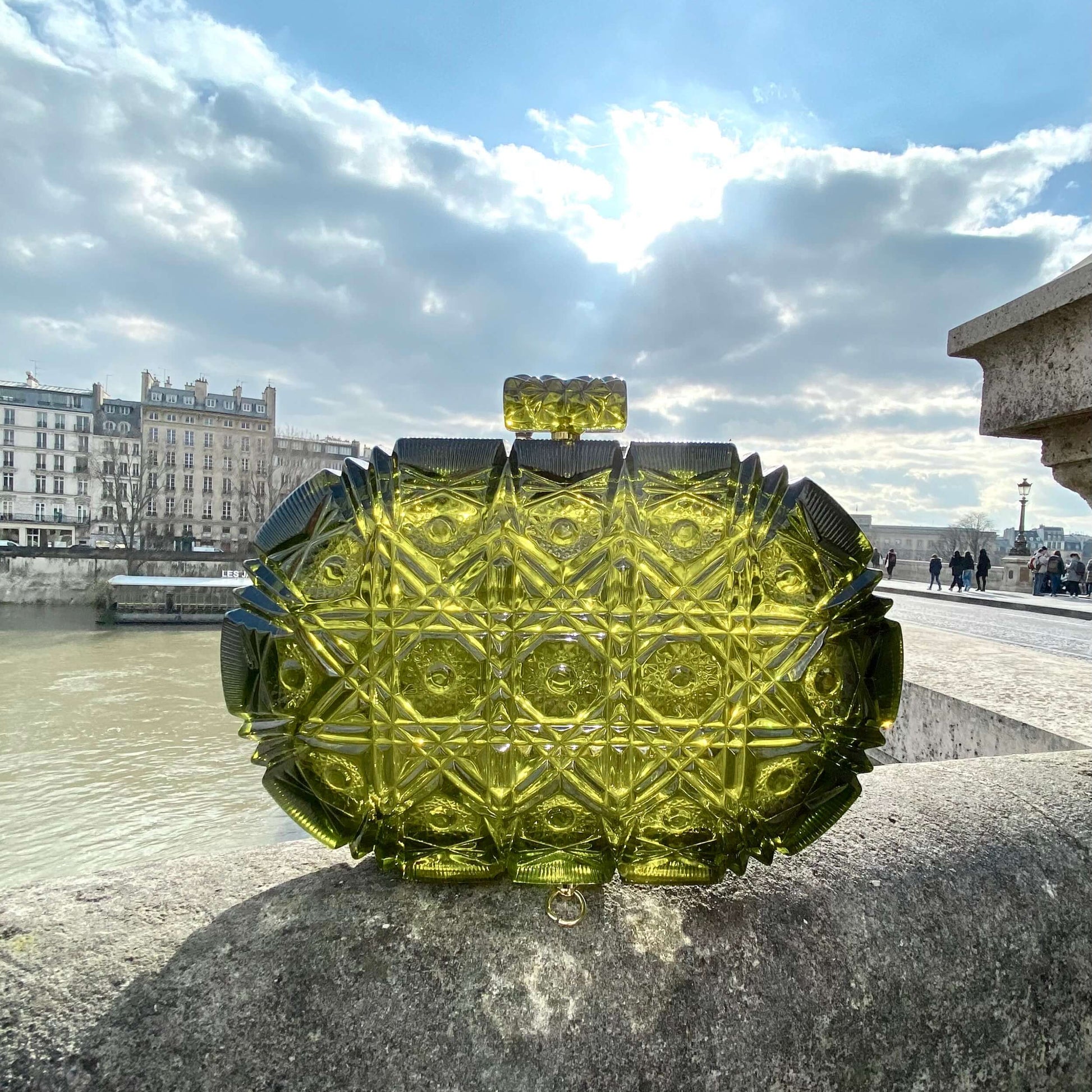 Our collections draw inspiration from vintage cut glass and each piece is made of resin, undergoing hand carving and high polishing process to achieve the final crystal like effect. This results in faceted statement pieces that are practical, durable and also notably less fragile and heavy than glass.