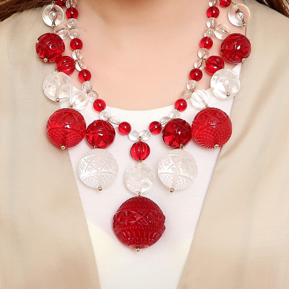Each bead is meticulously hand carved and high polished, this statement necklace captures the mesmerising play of light within its intricate pattern.
