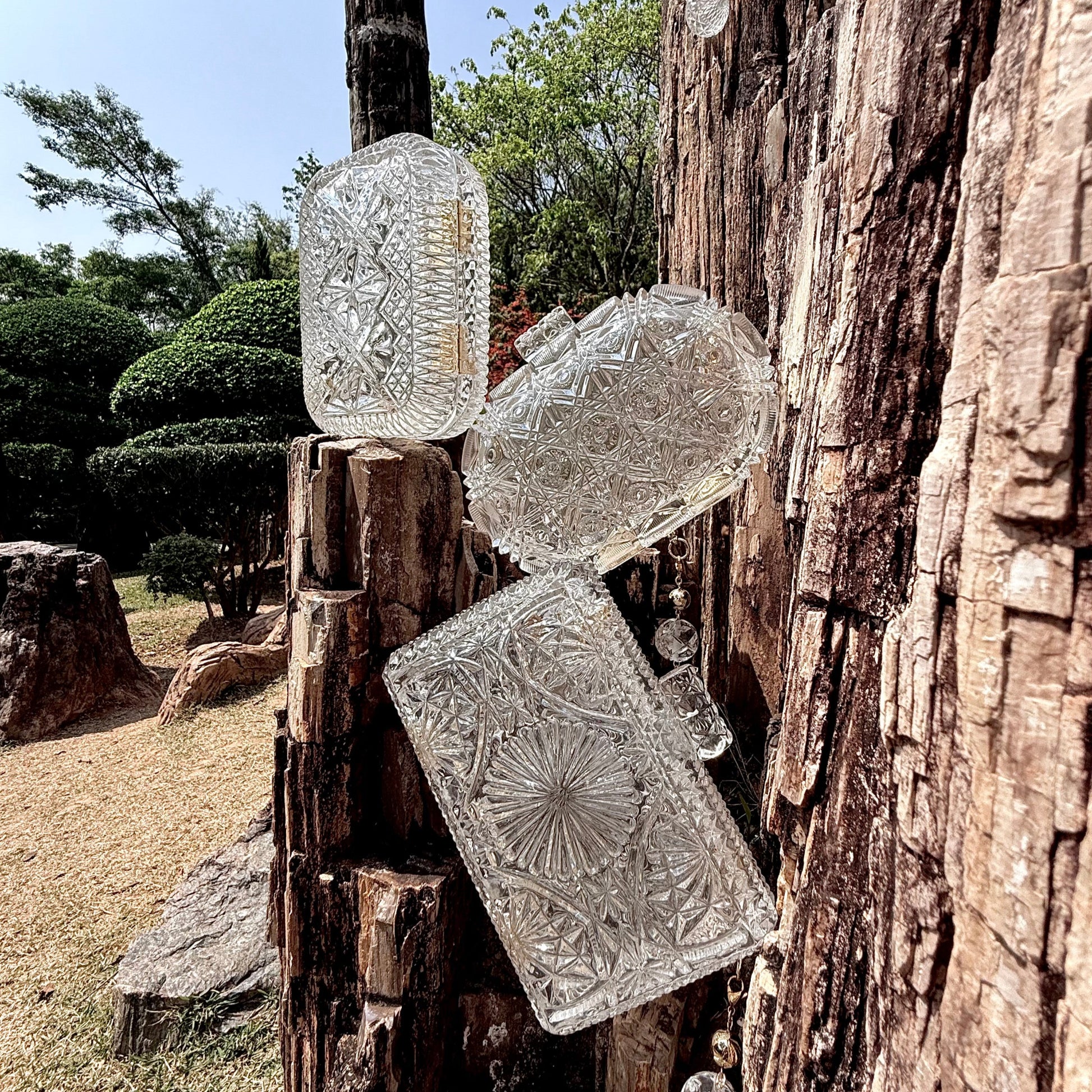 Our collections draw inspiration from vintage cut glass and each piece is made of resin, undergoing hand carving and high polishing process to achieve the final crystal like effect. This results in faceted statement pieces that are practical, durable and also notably less fragile and heavy than glass.