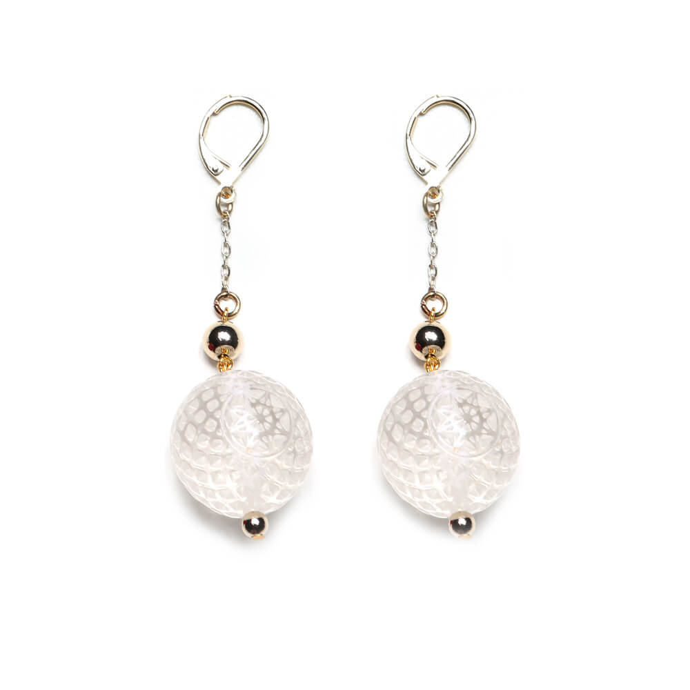 Each bead is meticulously hand carved and high polished, these statement earrings capture the mesmerising play of light within their intricate pattern.
