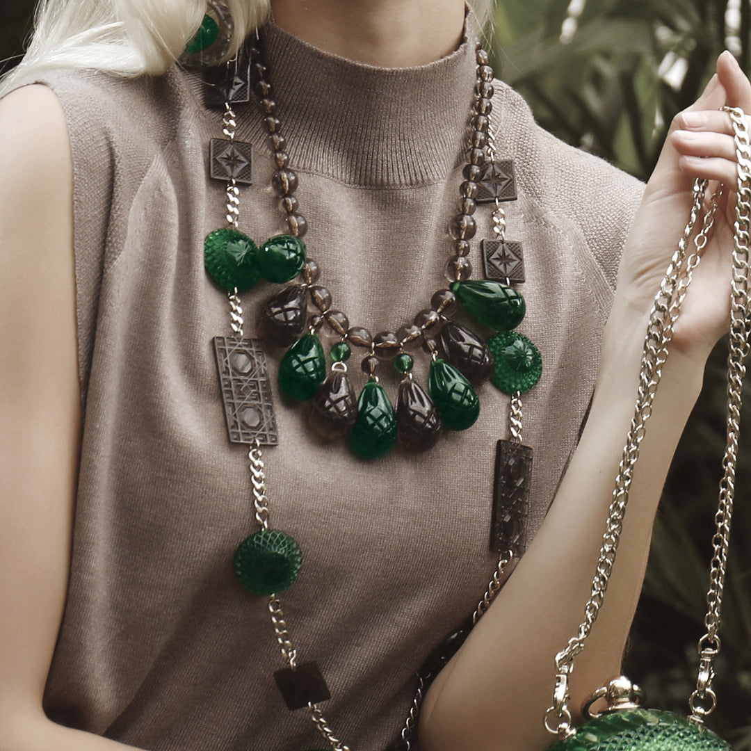 Each bead is meticulously hand carved and high polished, this statement necklace captures the mesmerising play of light within its intricate pattern.