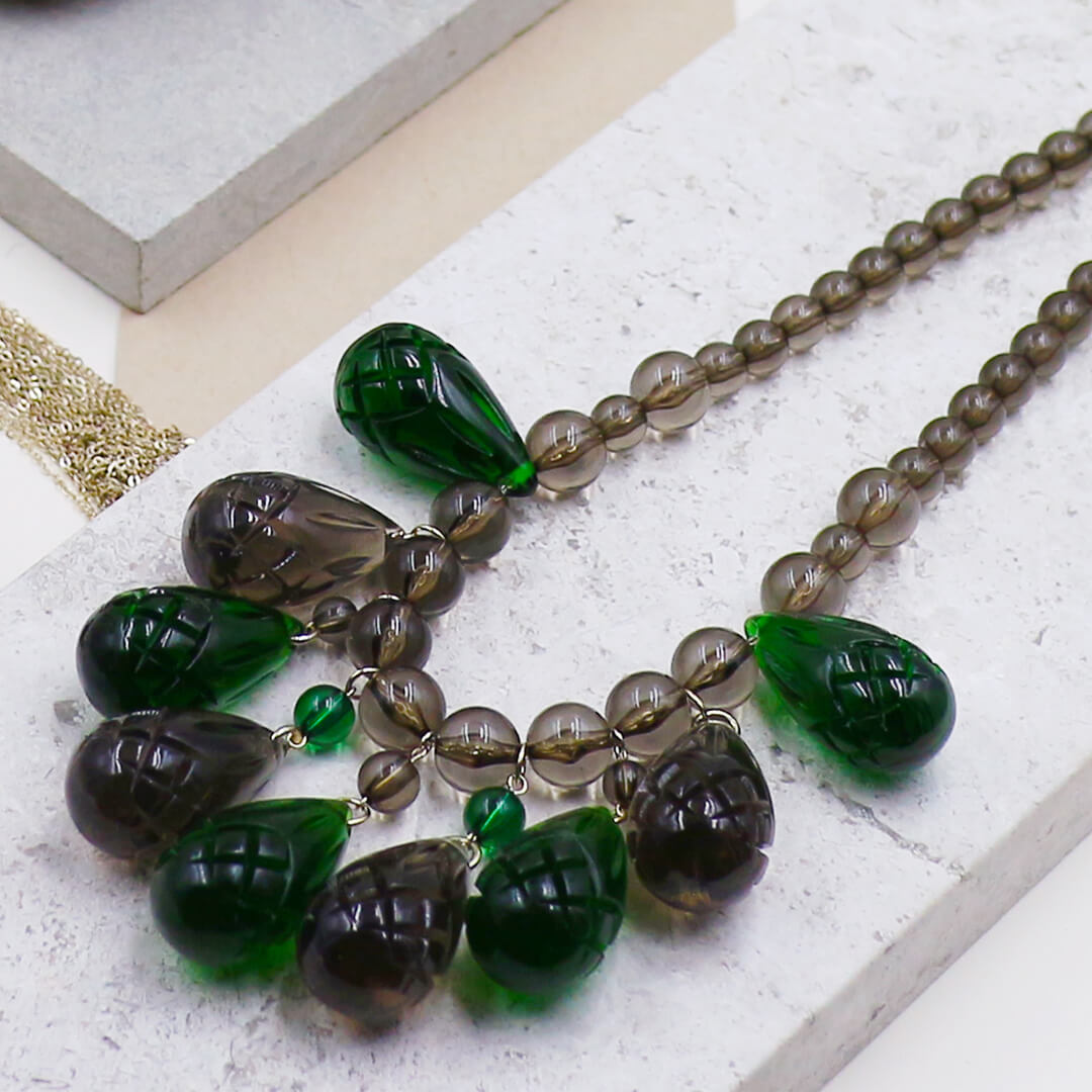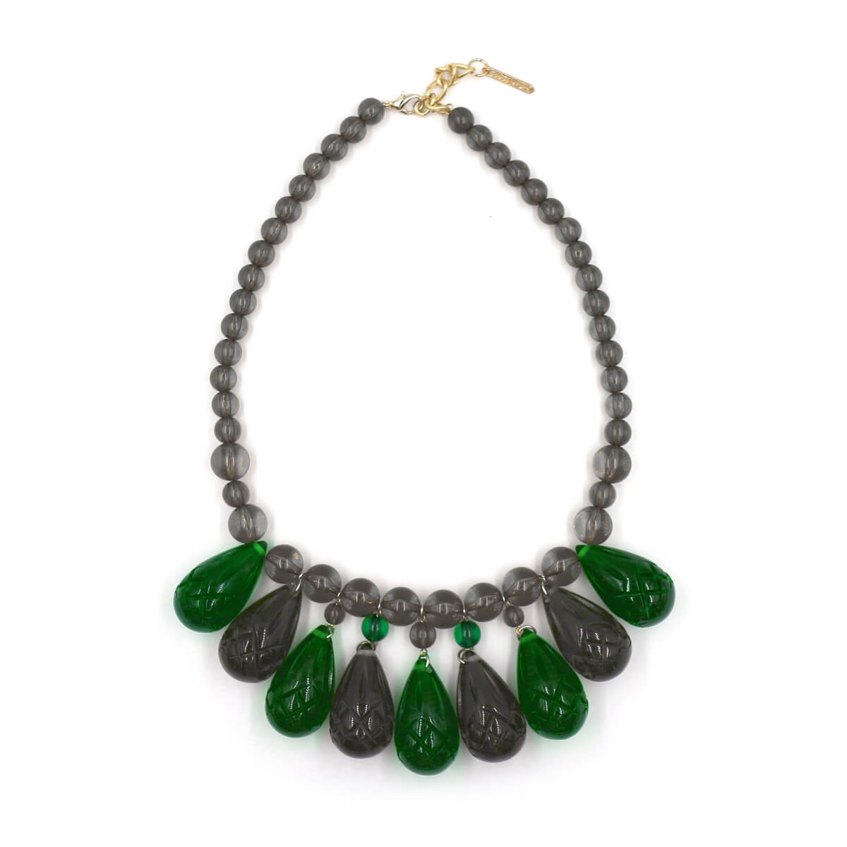 [MADE-TO-ORDER] Etched Teardrop Necklace Emerald Green & Grey